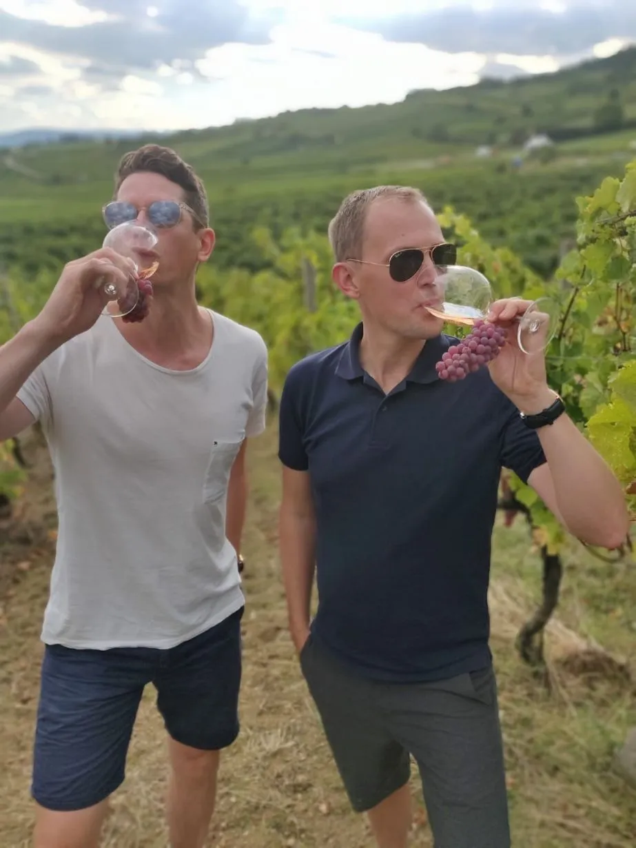 Vi delar ett mångårigt vinintresse som på senare tid fördjupats genom resor, utbildningar, provningar och masterclasses. Även vår kollega Rasmus har gått samma utbildningar, vilket gör att teamet har en solid kunskapsgrund i vinvärlden.