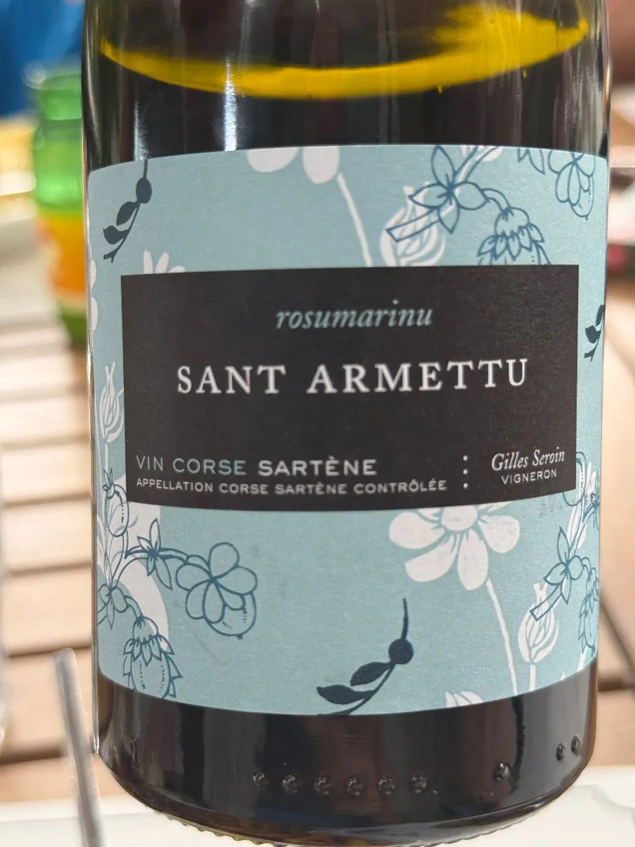 Sant Armettu, Rosumarinu – örtig Sciaccarellu från södra Korsika. Ca 16 euro på plats, finns även i Sverige för knappt 300 kr. Ett bra exempel på druvan.